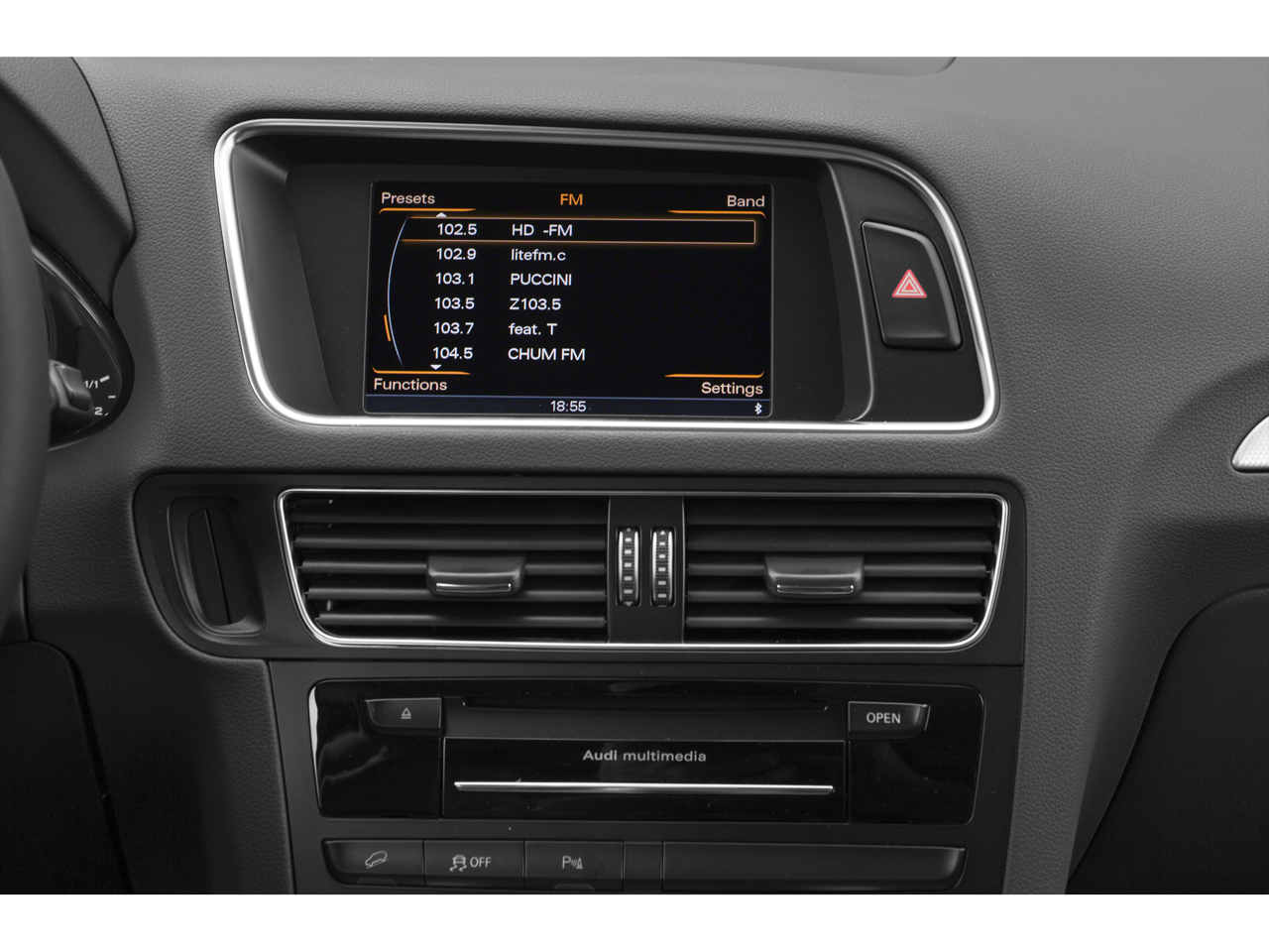 - Radio: Audi MMI Plus System w/6.5" Color Screen -inc: Audi music interface w/iPod integration, 6-channel DSP extended sound system w/10 speakers including subwoofer, 180W sound system, Bluetooth® wireless technology preparation for mobile phone, driver information center, SD card slot w/32GB capacity and SiriusXM satellite radio w/90-day trial subscription