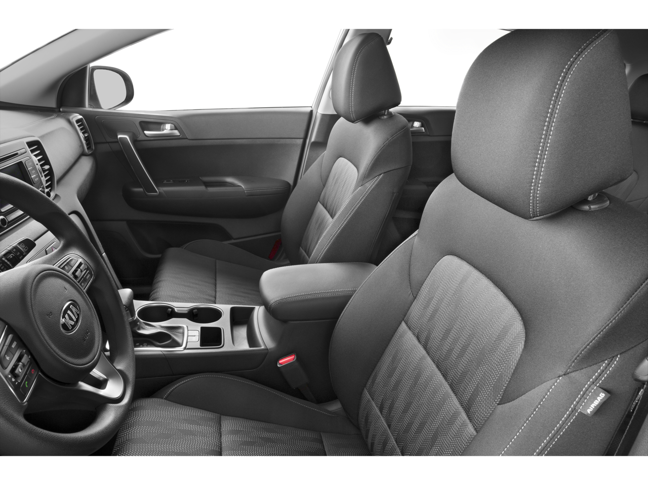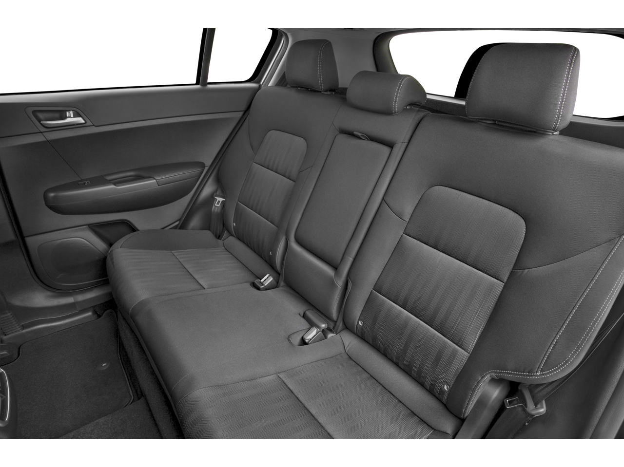 Inside, the Sportage LX offers a spacious and well-appointed cabin, with cloth seat trim, a driver's seat with 6-way manual adjustment, and a front center armrest for added comfort. The split-folding rear seat provides versatile cargo-carrying capabilities, ensuring you can easily accommodate your lifestyle needs.