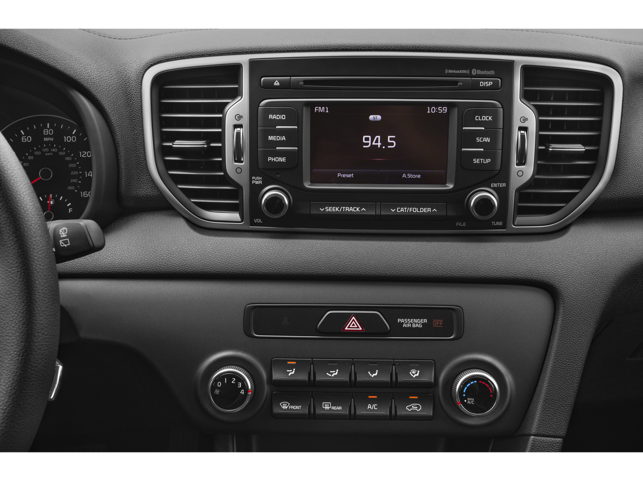 Beyond the practical enhancements, the Sportage LX offers a wealth of technology and convenience features to keep you connected and comfortable on the road. Enjoy the convenience of remote keyless entry, steering wheel-mounted audio controls, and speed control, all while staying entertained with the AM/FM/MP3/SiriusXM radio system and 6 speakers.