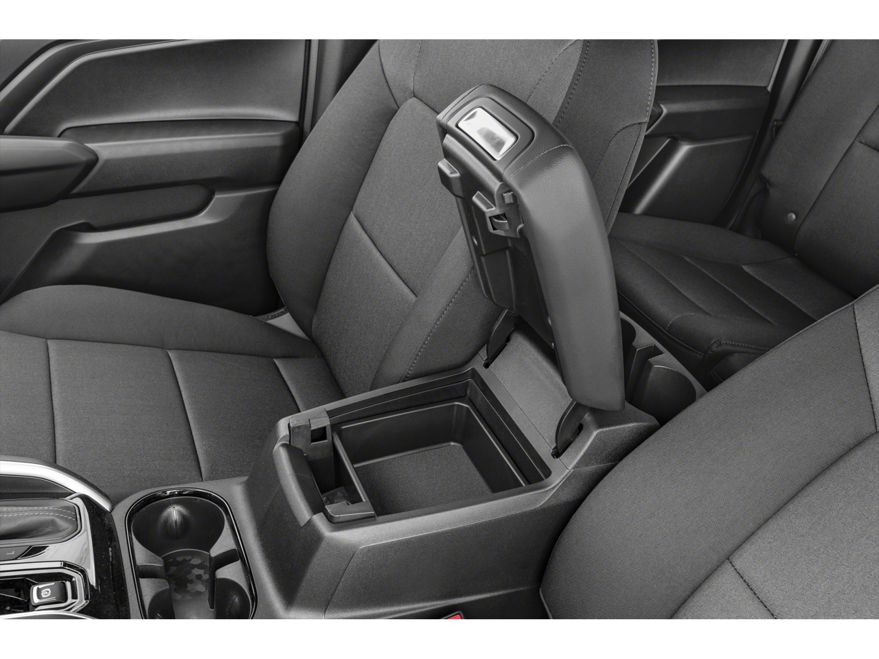 - Console, floor front compartment with cup holders and cell phone storage