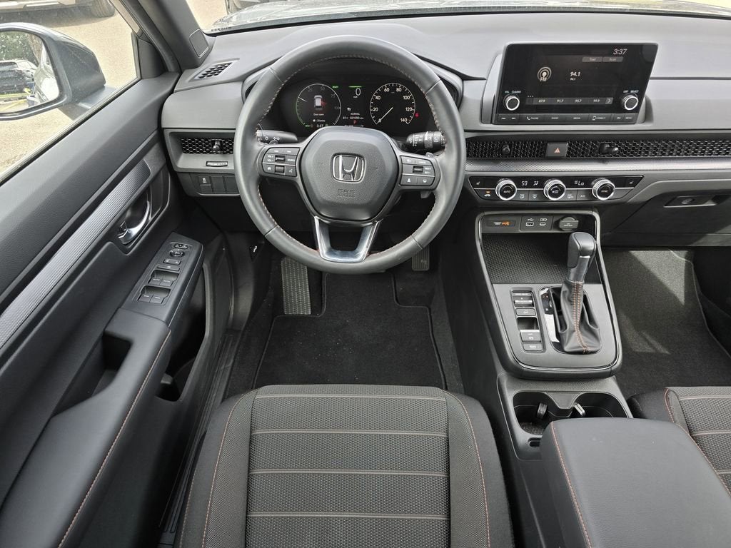 The CR-V Hybrid Sport's striking exterior features a bold, athletic stance and a sleek, aerodynamic design that turns heads wherever you go. Inside, the refined, well-appointed cabin provides a sanctuary of comfort and convenience, with features like dual-zone automatic climate control, a premium audio system, and a versatile split-folding rear seat that adapts to your needs.